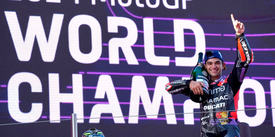 Jorge Martín inscribió su nombre en el palmarés de campeones del mundo de la categoría reina. Al fin. El madrileño es el quinto español que lo consigue tras Alex Crivillé, Jorge Lorenzo, Marc Márquez y Joan Mir. Martinator supo llevar a cabo una carrera capaz , basada en una aceptable salida y en ni meterse en líos. Dejó que Pecco Bagnaia se escapara y se dedicó a administrar neumáticos y ataques. Fue un fin de semana perfecto para el italiano de Ducati, que logró la pole, ganó la carrera al esprint y también la carrera larga.