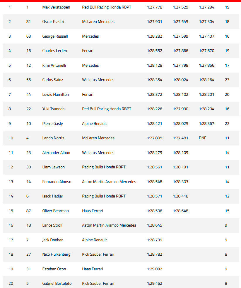 Russell, con el Mercedes, fue tercero y desea también aspirar a todo con el que hasta ahora parece ser el segundo mejor monoplaza. Mientras que , Charles Leclerc volvió a tirar del carro de Ferrari, poniendo su vehículo colorado en la 4ª situación de la parrilla de salida del GP de Arabia Saudita de F1 2025, superando precisamente a su compañero Hamilton, que prosigue viviendo una pesadilla con el coche italiano.