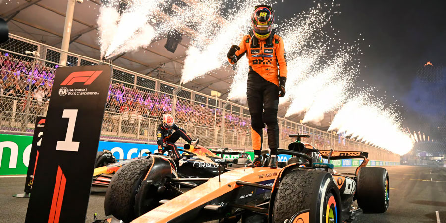 Oscar Piastri no entiende lo que es la presión. Saliendo segundo en la carrera del Gran Premio de Arabia Saudí , en Yeda, sabía que tenía que ganar, que se encontraba frente su oportunidad de liderar el Mundial de Fórmula 1. Tenía un hueso duro de roer por enfrente , Max Verstappen, y también hizo la carrera que se estima por parte de un conduzco con más experiencia en la F1 como es su compañero Norris, ganando la carrera, con Verstappen segundo y Converses Leclerc completando el podio tras una magnífica actuación con el Ferrari.